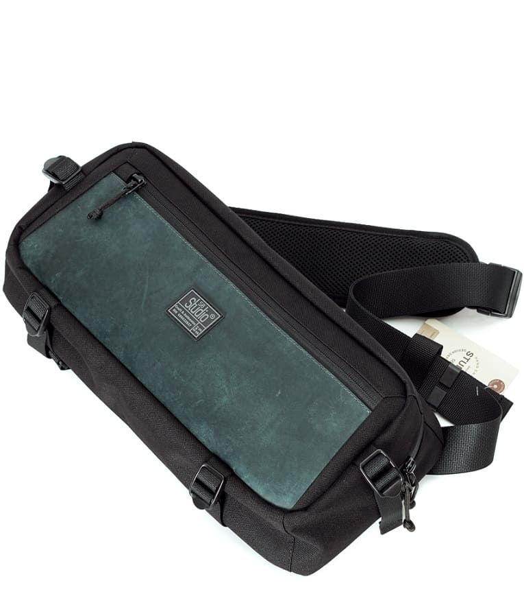 Сумка-слинг TRAFFIC черный/натуральная кожа зеленая